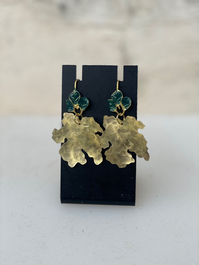 Pendientes en latón de 0,3mm que les aporta gran ligereza y cierre de tipo gancho con forma de hojas.